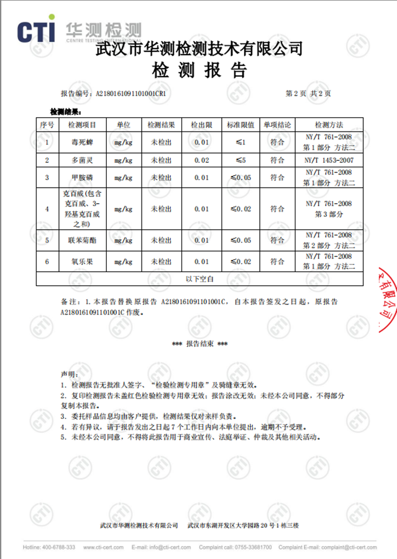 石門泰淼柑橘符合《食品安全國家標準,食品中農藥最大殘留限量》要求。