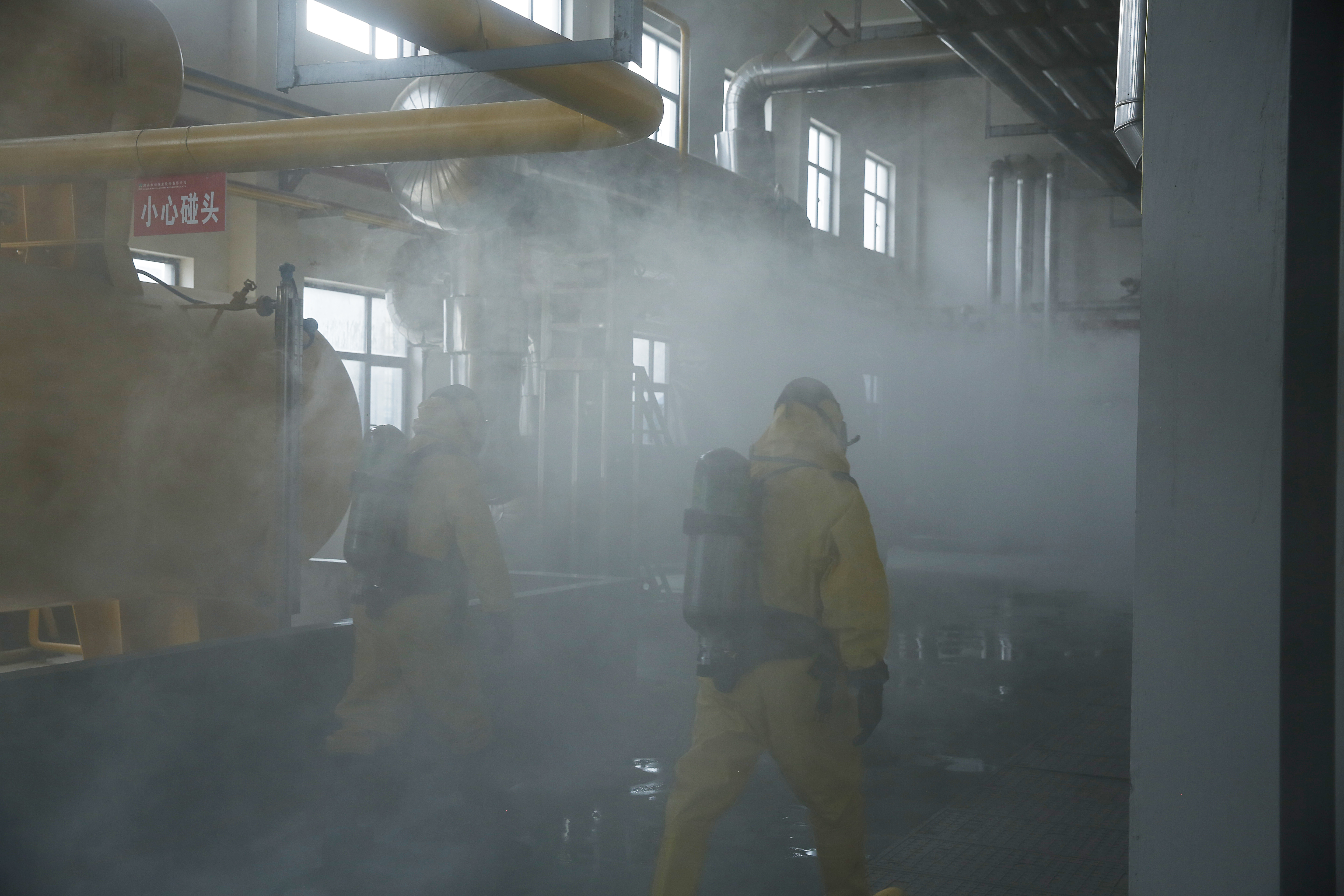 這次演練主要是模擬火災發生、液氨泄漏的情景。