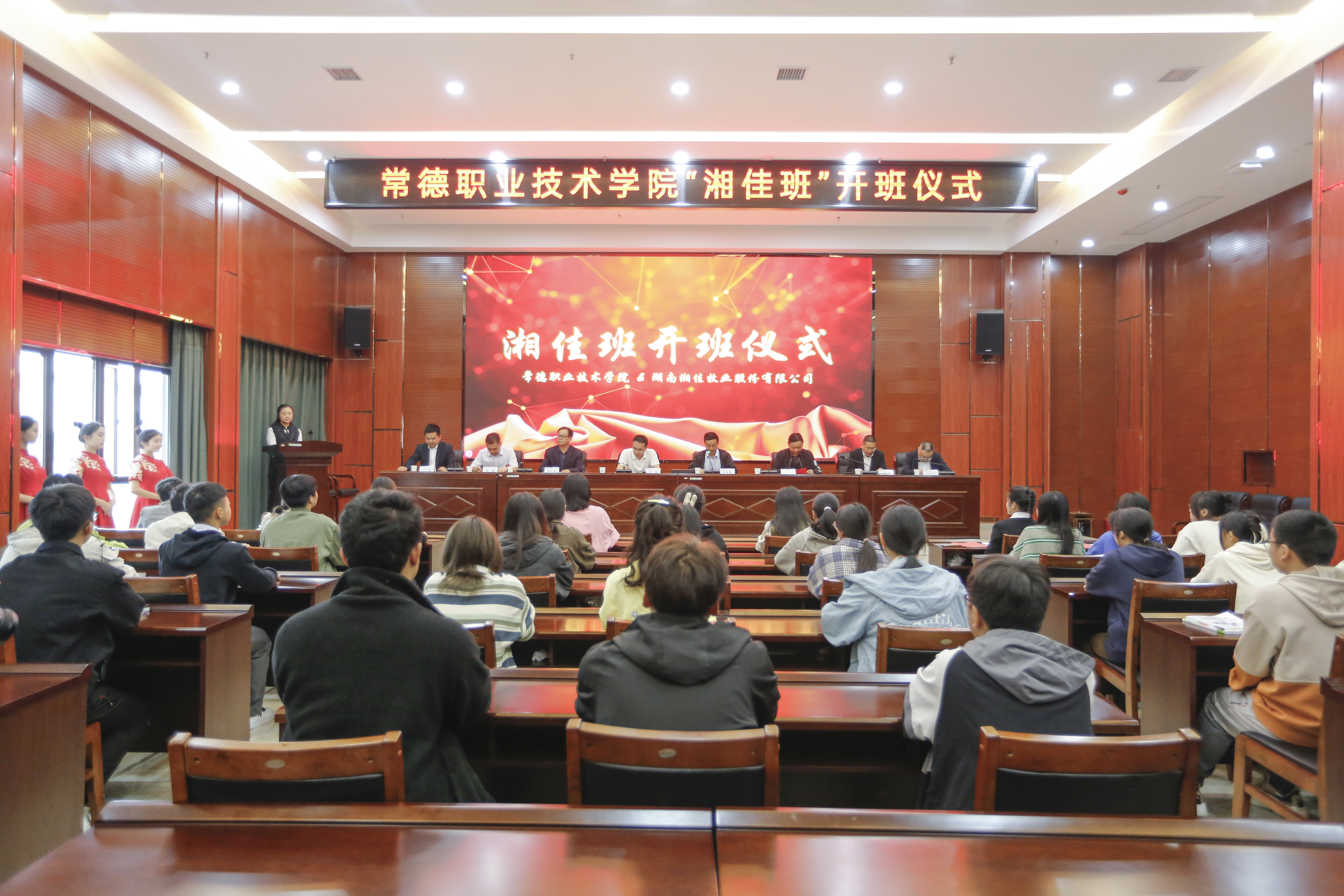 10月10日,湘佳股份與常德職業(yè)技術(shù)學(xué)院聯(lián)合開辦的首屆“湘佳班”開班儀式在常德職業(yè)技術(shù)學(xué)院會(huì)議廳舉行。常德職業(yè)技術(shù)學(xué)院黨委副書記徐翔、湘佳股份副總裁兼董事會(huì)秘書何業(yè)春、總裁助理兼文化部部長賀欣初出席開班儀式,學(xué)院相關(guān)領(lǐng)導(dǎo)、專業(yè)教師、湘佳班全體學(xué)生以及湘佳股份導(dǎo)師代表參加開班儀式。