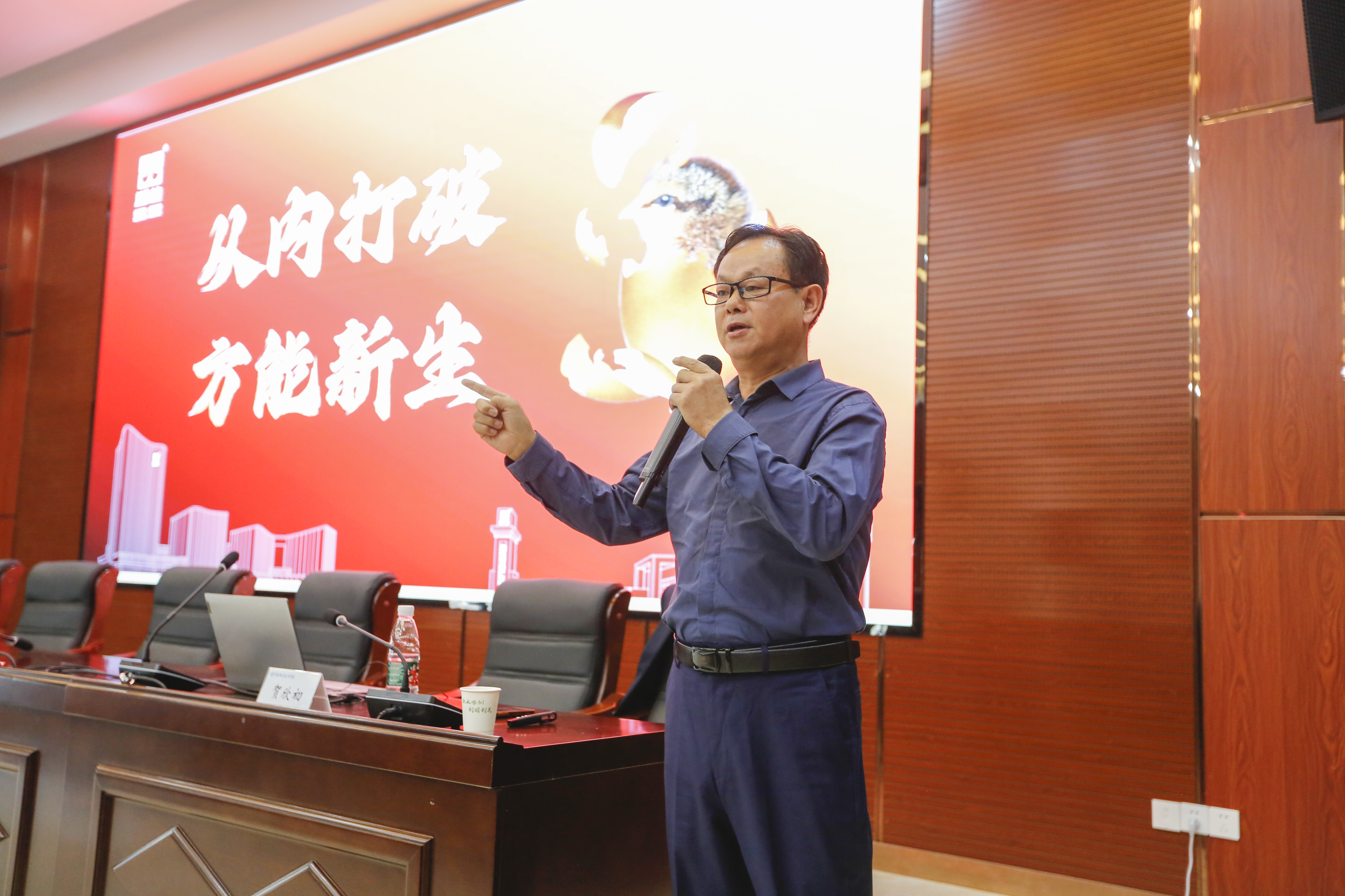 在“湘佳班”開班第一課上,湘佳股份總裁助理兼文化部部長賀欣初以“從內(nèi)打破,方能新生”為主題,開展了企業(yè)文化講座。